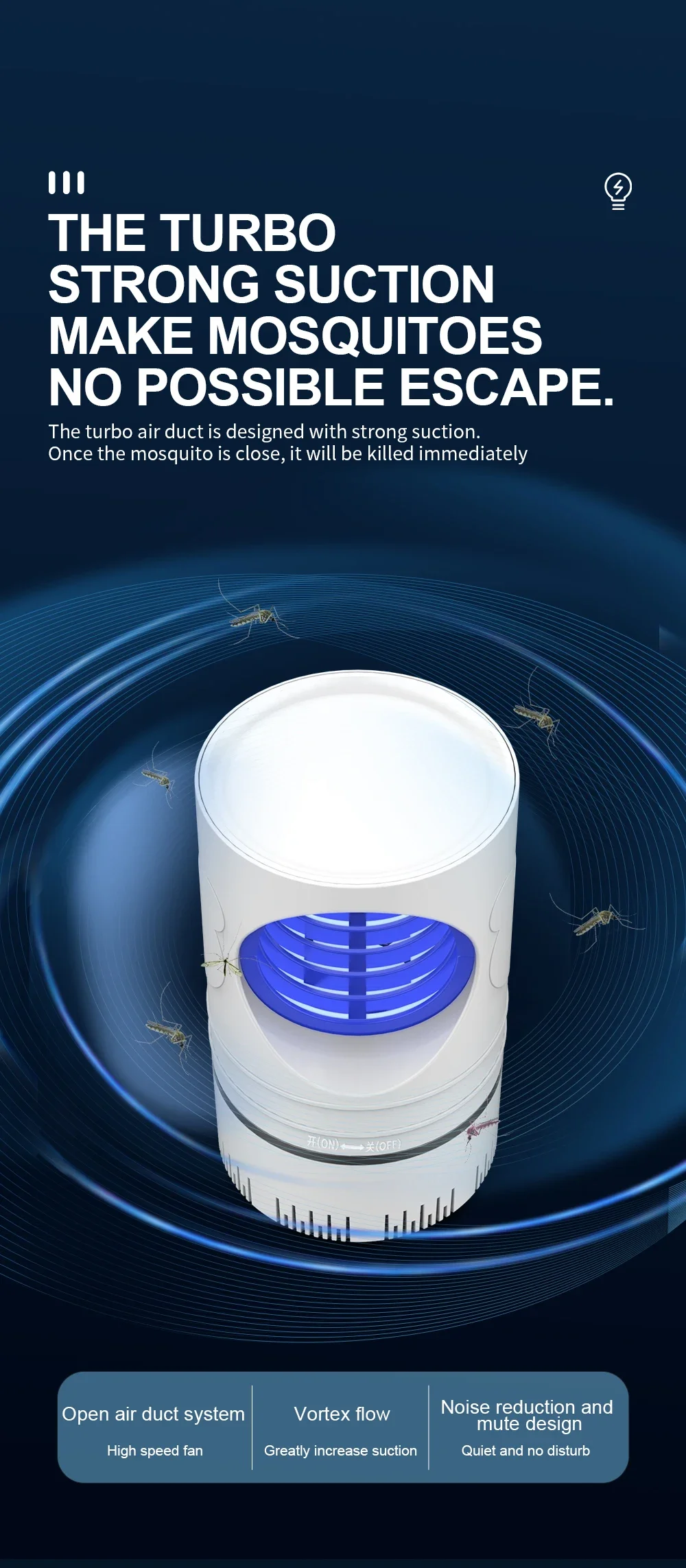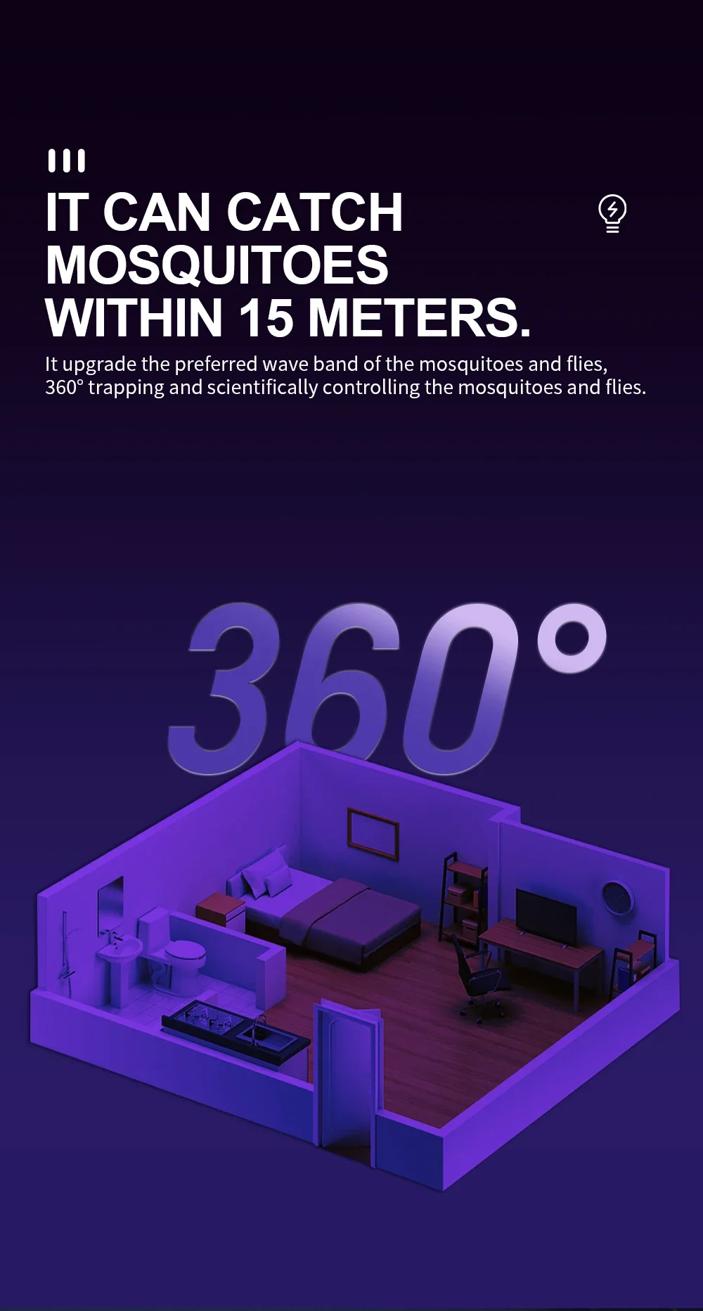 360° mosquito trapping: 360° mosquito trapping and 8 lamp beads double the mosquito trapping effect.